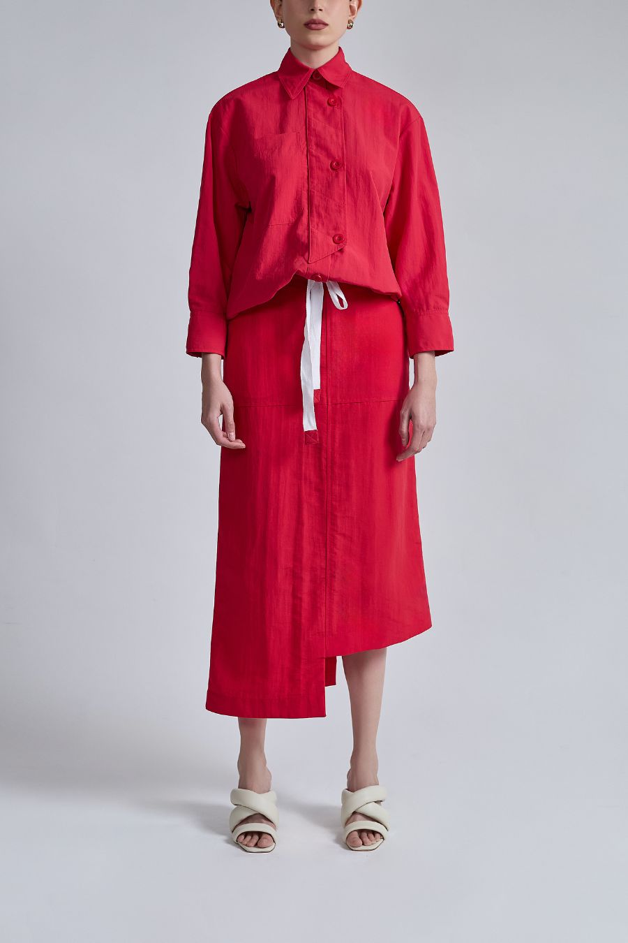 FALDA MIDI CINTURA DRAPEADA