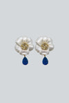 ARETES FLOR BLANCA CRISTAL AZUL