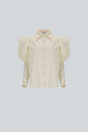 Camisa de manga larga de silueta oversized con inspiración militar, mangas abullonadas y puños ajustados con botones forrados que aportan carácter arquitectónico. Cierre frontal con botones forrados.