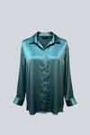 Blusa de manga larga con cuello camisero. Confeccionada en un exquisito satin, cuenta con cierre mediante botones al frente.