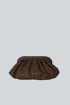 Clutch elaborado en piel café texturizada y suave, con una silueta depurada que añade un toque de sofisticación atemporal. Hecho a mano en México, destaca por su diseño minimalista y la etiqueta del diseñador al frente, un detalle que eleva su carácter contemporáneo.
