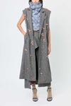 Chaleco largo de silueta oversized confeccionado en lana. Cuenta con solapa clásica y detalles de pedrería bordados a mano.