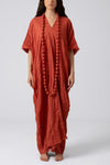 Vestido Maxi de manga corta con escote en V confeccionado en lino. Incluye collar.