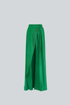 Pantalón de tiro alto confeccionado en satin plisado, con diseño de una sola pierna y sobrefalda lateral que aporta movimiento y un gesto arquitectónico. Una pieza original y versátil, pensada para estilismos contemporáneos.